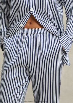 csíkos sztreccs selyem hosszú ujjú pj szett 2680482999 nők Ralph Lauren kék csíkok