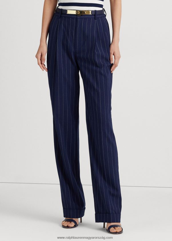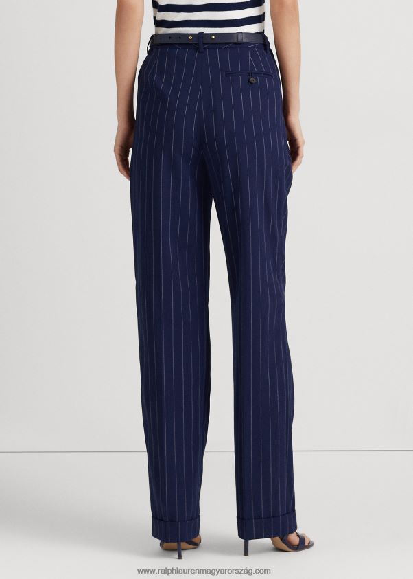 csíkos twill egyenes nadrág 2680489563 nők Ralph Lauren rafinált sötétkék/fehér