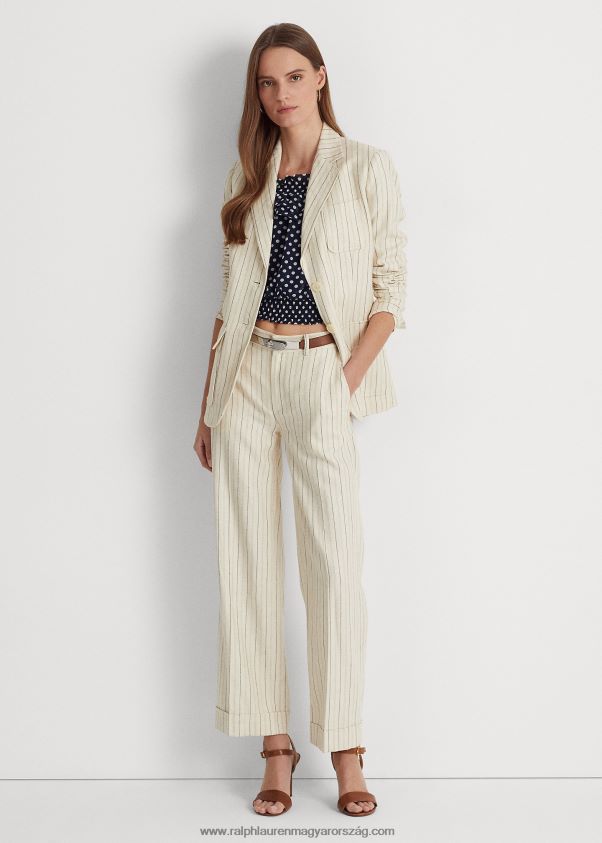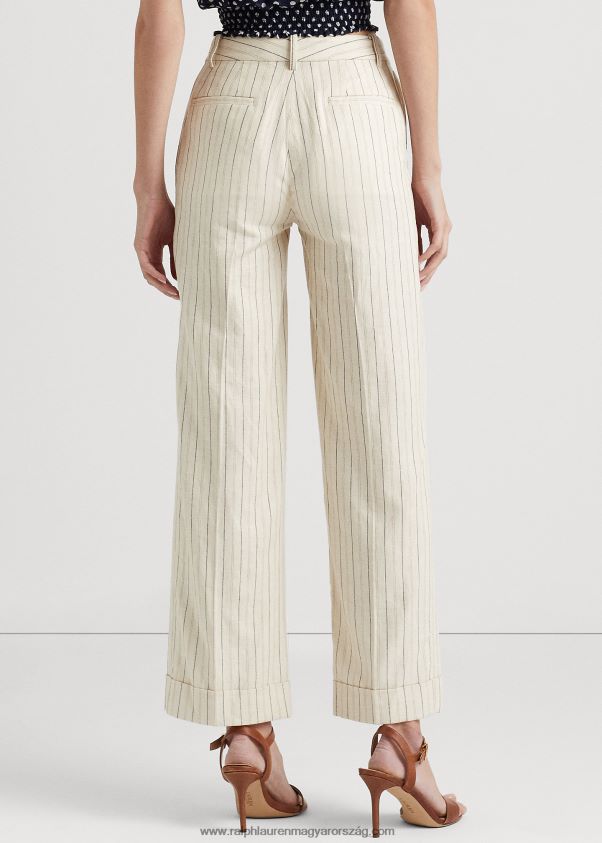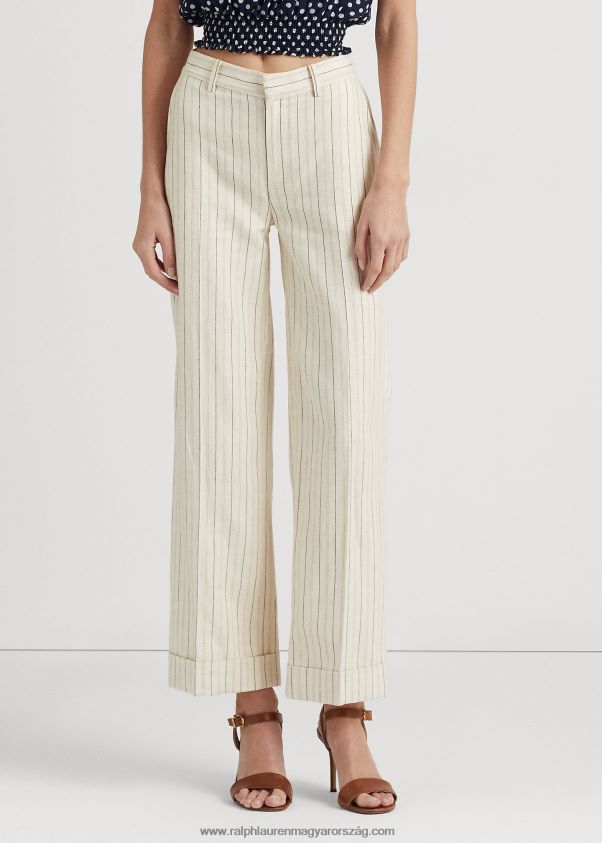 csíkos twill széles szárú levágott nadrág 2680484112 nők Ralph Lauren krém/finomított sötétkék