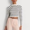 csíkos vágott álnyakú pulóver 2680489469 nők Ralph Lauren mascarpone krém/tengerszín
