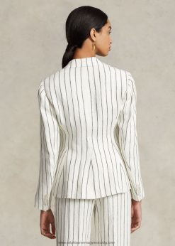 csíkos vászon jacquard blézer 2680483183 nők Ralph Lauren krém/szerecsendió csík