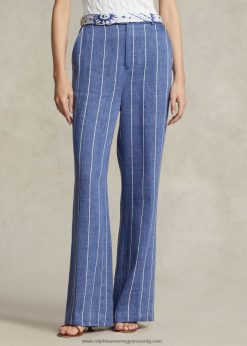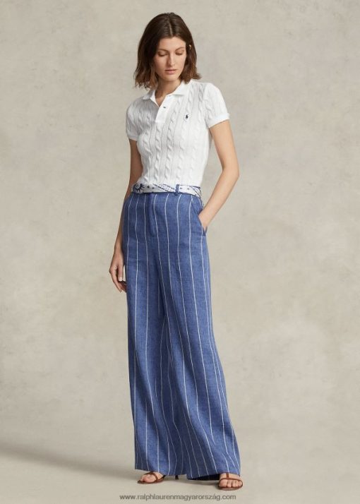 csíkos vászon-pamut széles szárú nadrág 2680483069 nők Ralph Lauren kék/fehér csík