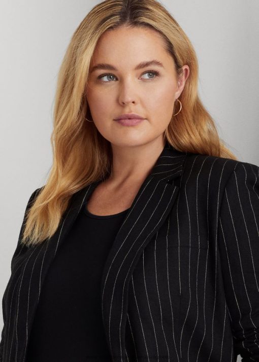 csíkos vászonkeverék twill blézer 2680484777 nők Ralph Lauren fekete/krém