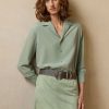 A darien újra feltalálja a modern nők ikonikus férfiruházatát. ez az olasz gyártmányú stílus egyesíti az eperfa selyem krepp-dechine-t visszafogott, mégis alaposan megfontolt részletekkel, beleértve az eredeti gyöngyház gombokat, finom ráncokat a mandzsettáknál, a hátsó ráncokat a járom alatt és az átalakítható gallért, amely felfedi a vékony hajtókákat, amikor a nyak gombja nem történik meg.