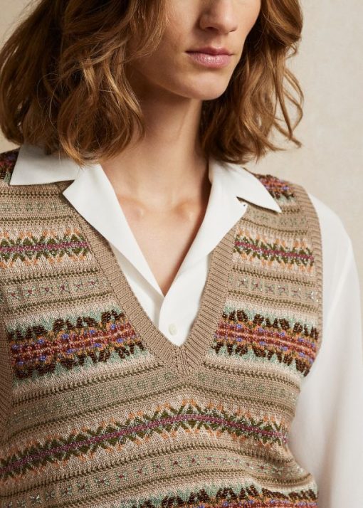 díszített fair isle pulóver mellény 2680483535 nők Ralph Lauren méz multi