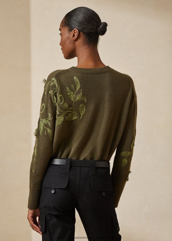 díszített kasmír nyakú pulóver 2680489290 nők Ralph Lauren ikon olajbogyó