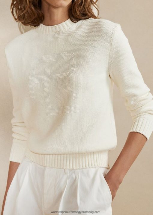 díszített rl pamutkeverék pulóver 2680483542 nők Ralph Lauren törtfehér/fehér