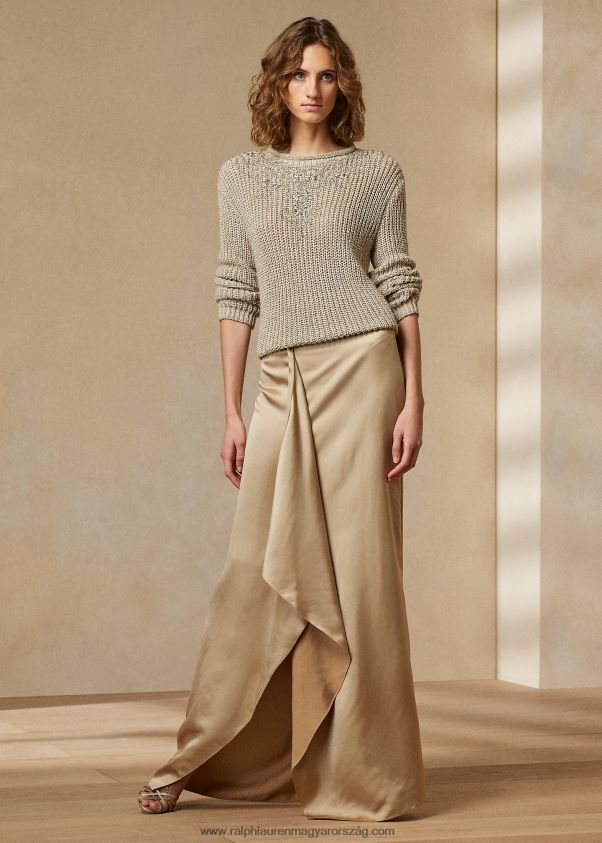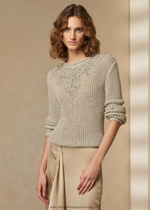 díszített selyem nyakú pulóver 2680483541 nők Ralph Lauren pergamen tweed