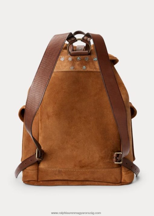 Ikonikus hátizsák modell durva velúrból, amelyet Mr. Lauren kettős rl ranchja a coloradói Rigway-ben. A szövet hagyományos módszerekkel készül egy történelmi amerikai bőrgyárban. sima bőr szegély.