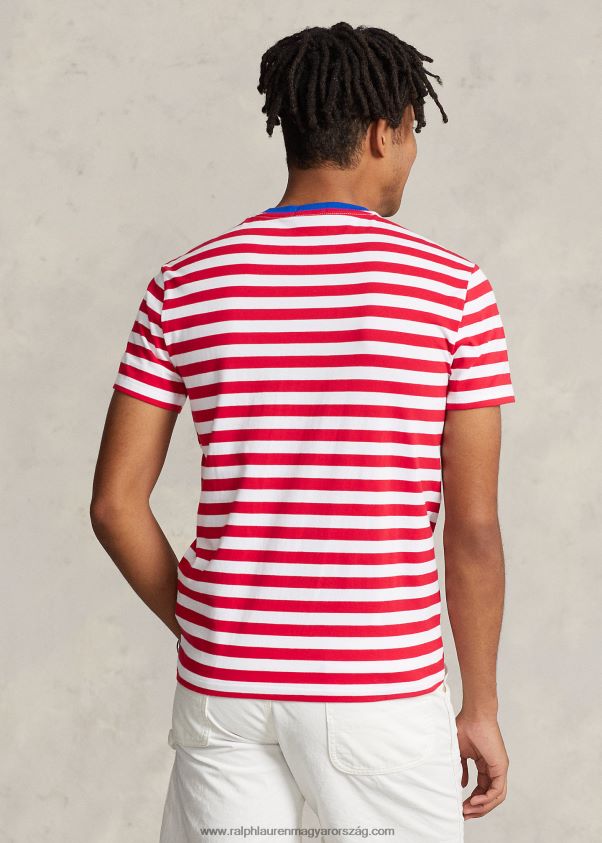 egyedi karcsú szabású csíkos dzsörzé póló 268048520 férfiak Ralph Lauren pandora piros/fehér