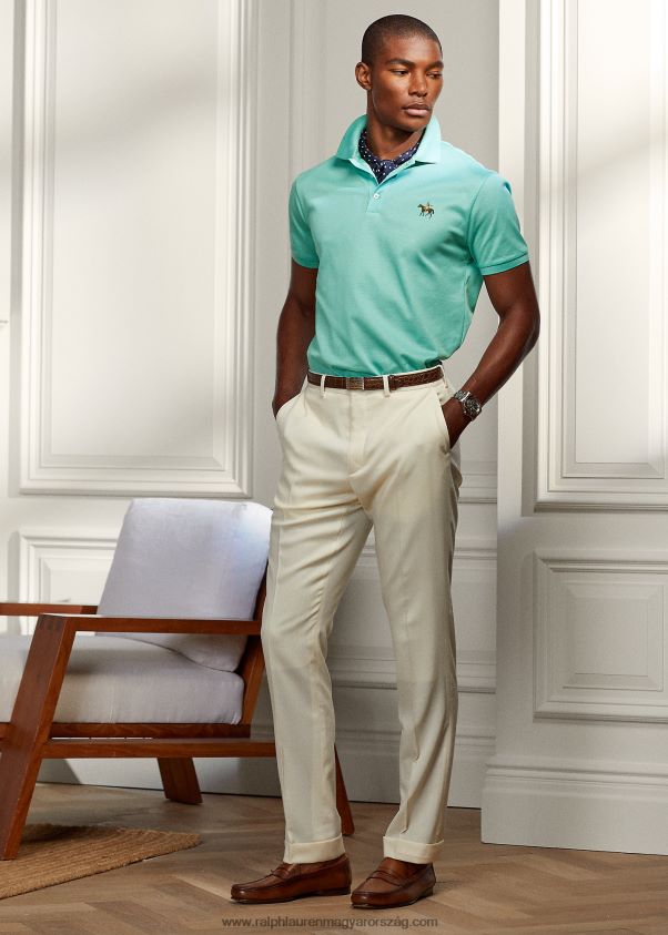egyedi vékony szabású piké póló 26804857 férfiak Ralph Lauren tengeri üveg zöld