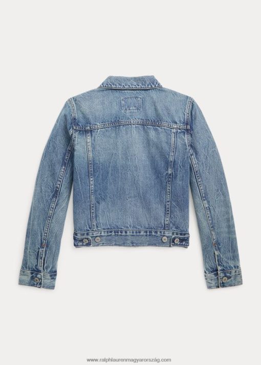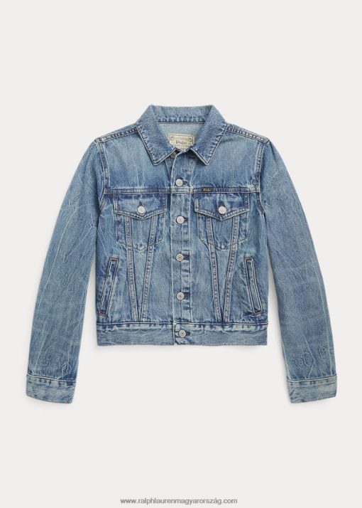 ez a klasszikus kamionos kabát mosott pamut farmerből készült, és jellegzetes „polo ralph lauren” hardverrel van ellátva.