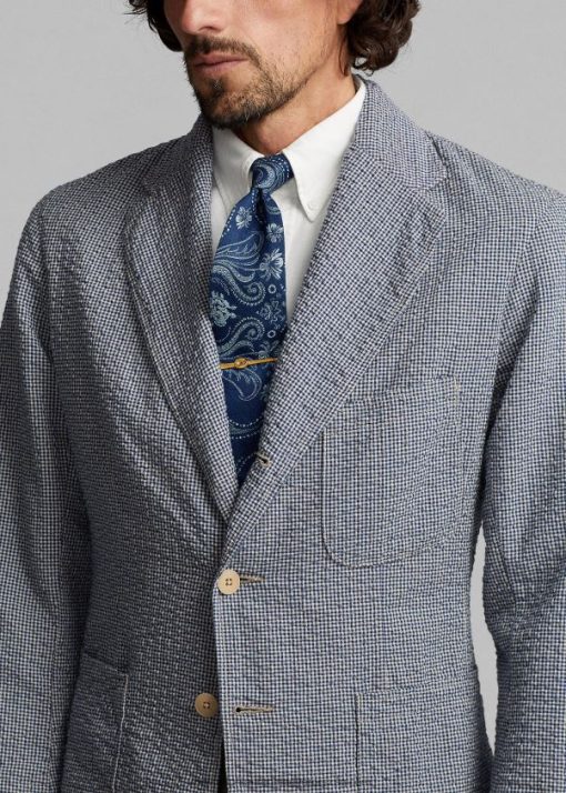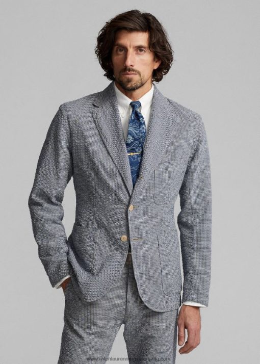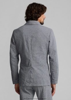 felépítés nélküli seersucker sportkabát 2680481719 férfiak Ralph Lauren kék/krém