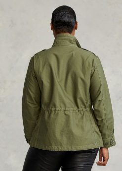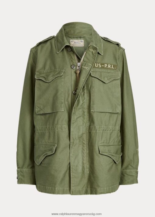 A pamutból készült, törött-villás szövésű kabát olyan autentikus, többlet-ihlette részleteket mutat be, mint például a túlméretezett zsebek, a vállpántok, valamint a derékban és a szegélyben állítható húzózsinórok. egy hímzett folt a bal mellkason jellegzetes pólóstílust kölcsönöz.