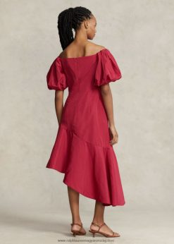fodros aszimmetrikus taft ruha 2680483003 nők Ralph Lauren piros málna