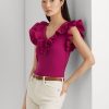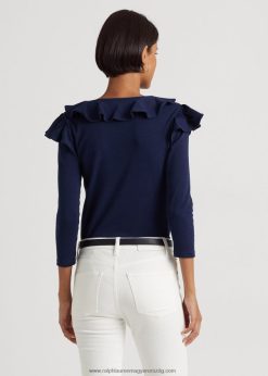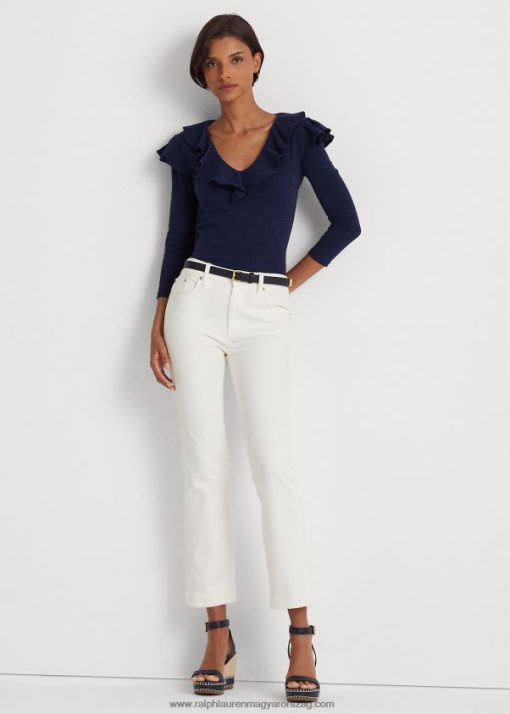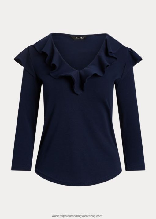 fodros szegélyű sztreccs pamut V-nyakú felső 2680484038 nők Ralph Lauren kifinomult haditengerészet