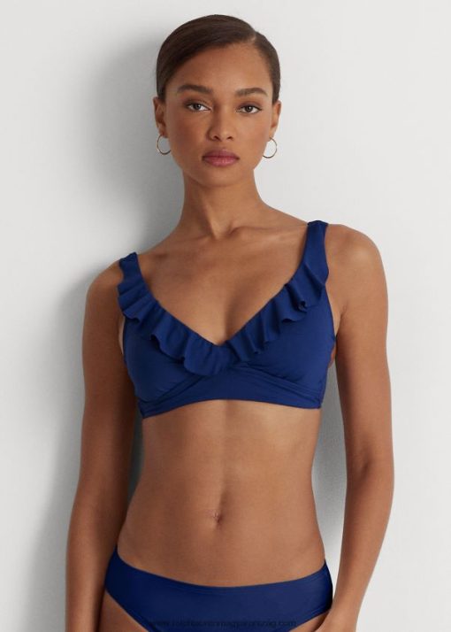 fodros szegélyű V-nyakú bikinifelső 2680484214 nők Ralph Lauren zafír