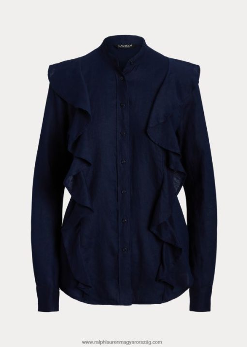 A lépcsőzetes fodrok nőies érzékenységet kölcsönöznek ennek az ingnek, amely könnyű vászonból készült. Elegáns vágott darab, amely felfelé vagy lefelé öltöztethető, „lauren ralph lauren” gravírozású gombokkal van díszítve az egyedi megjelenés érdekében.
