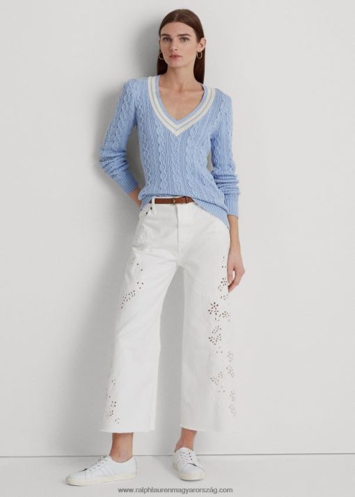 fűzőlyukú magas szárú, rövidített farmer 2680483904 nők Ralph Lauren fehér mosás