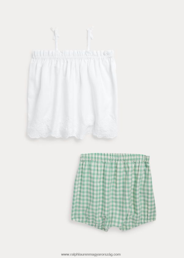 fűzőlyukú pamut felső és gingham rövid szett 2680487776 baba Ralph Lauren fedélzetmosó fehér