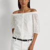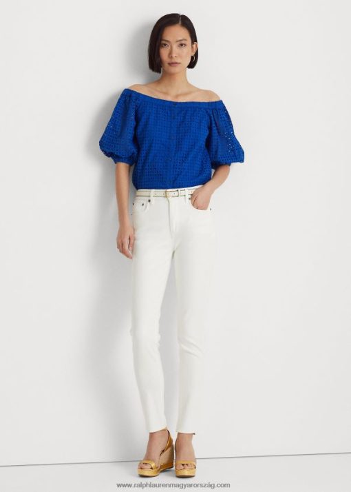 fűzőlyukú pamut vállból készült blúz 2680483914 nők Ralph Lauren kék szaturnusz