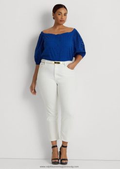 fűzőlyukú pamut vállból készült blúz 2680484568 nők Ralph Lauren kék szaturnusz