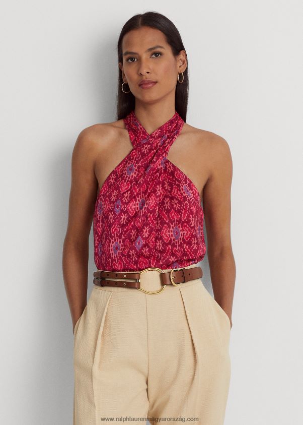 geo-print shantung kötőfékű blúz 2680484301 nők Ralph Lauren fukszia multi