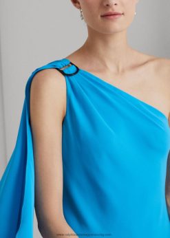 Georgette egy vállú koktélruha 2680483899 nők Ralph Lauren lángoló óceán