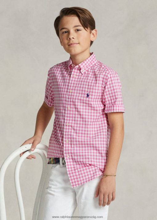 gingham pamut poplin rövid ujjú ing 2680486552 gyerekek Ralph Lauren üdülő rózsa/fehér