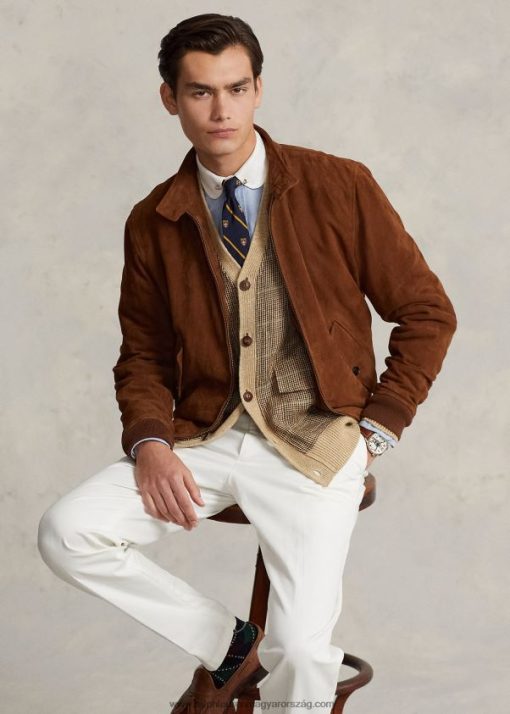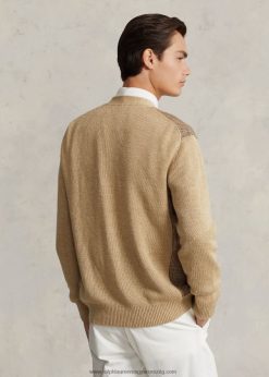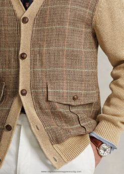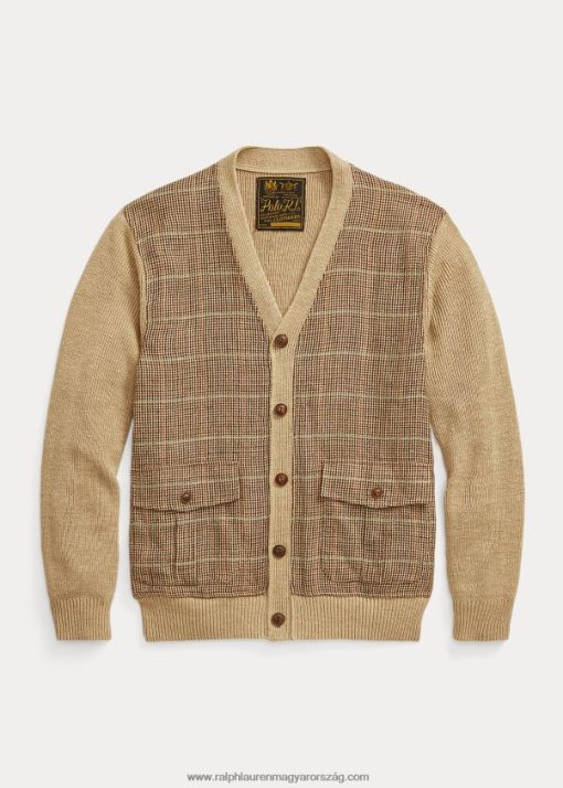 glen kockás paneles vászon-selyem kardigán 268048147 férfiak Ralph Lauren tan multi