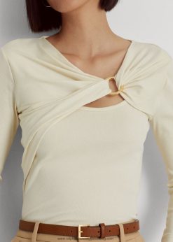 gyűrűs elülső bordás kötött felső 2680484454 nők Ralph Lauren mascarpone krém