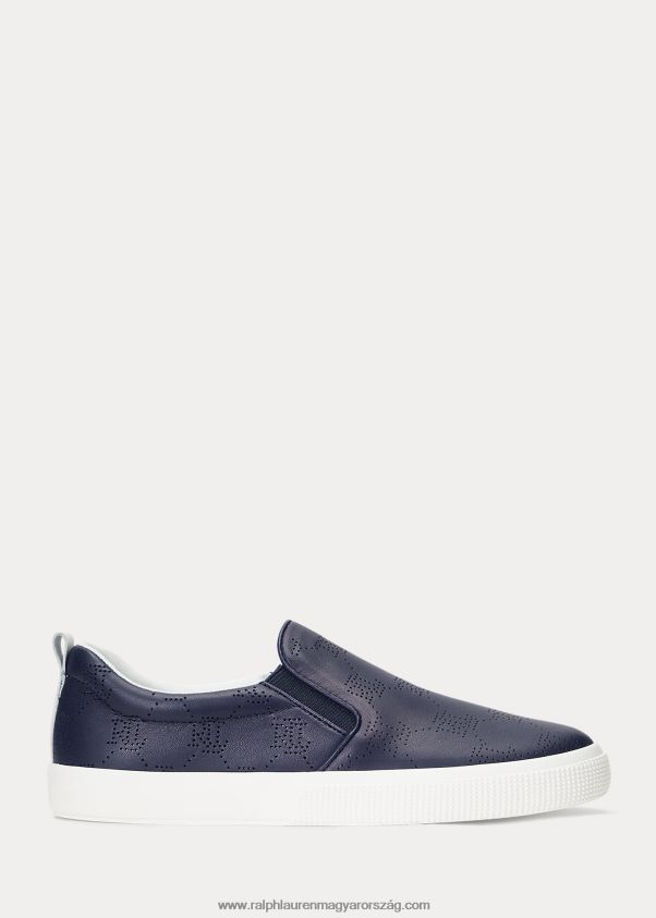Egyenlőre sportos és elegáns, a haddley felcsúsztatható tornacipő luxusbőrből készült, amelyet Lauren jellegzetes perforált monogrammotívuma tarkít. A vulkanizált szerkezettel és az exkluzív hornyolt hab talpbetéttel úgy tervezték, hogy egyenletesen ossza el a súlyt, és minden lépésnél a lehető legnagyobb kényelmet nyújtja.