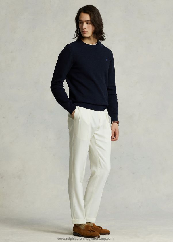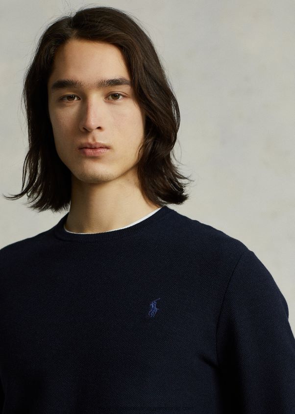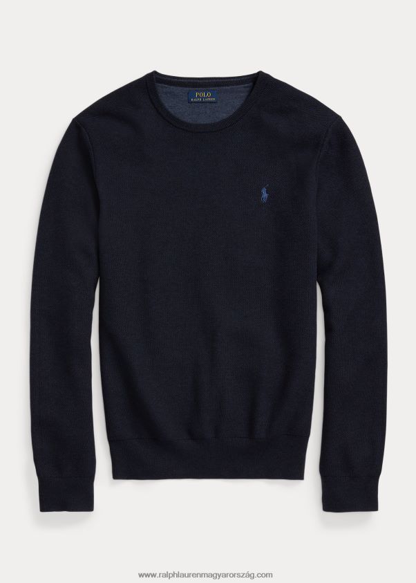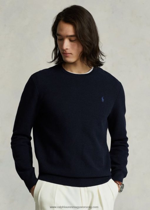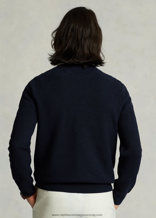 hálós kötésű pamut nyakú pulóver 2680488592 férfiak Ralph Lauren sötétkék hanga