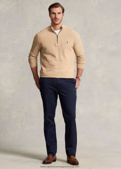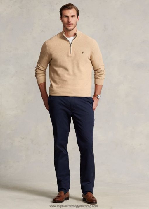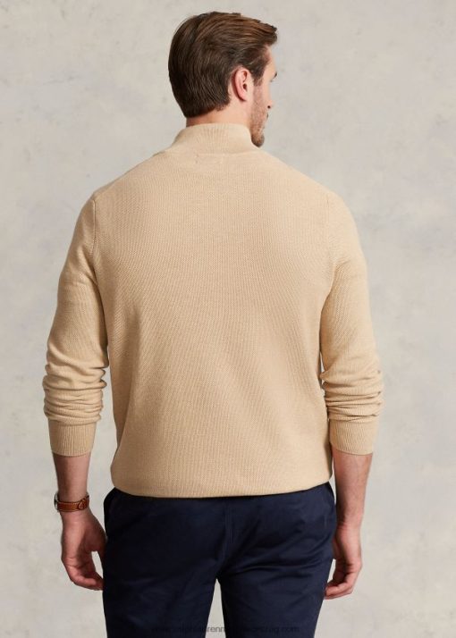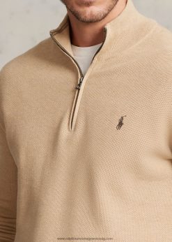 hálós kötött pamut negyedcipzáras pulóver 2680481916 férfiak Ralph Lauren teve melanzs