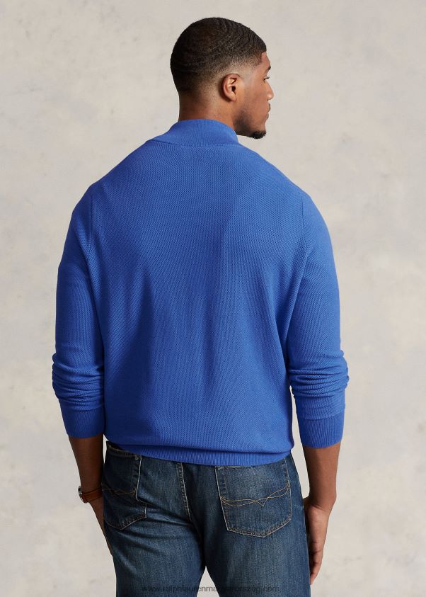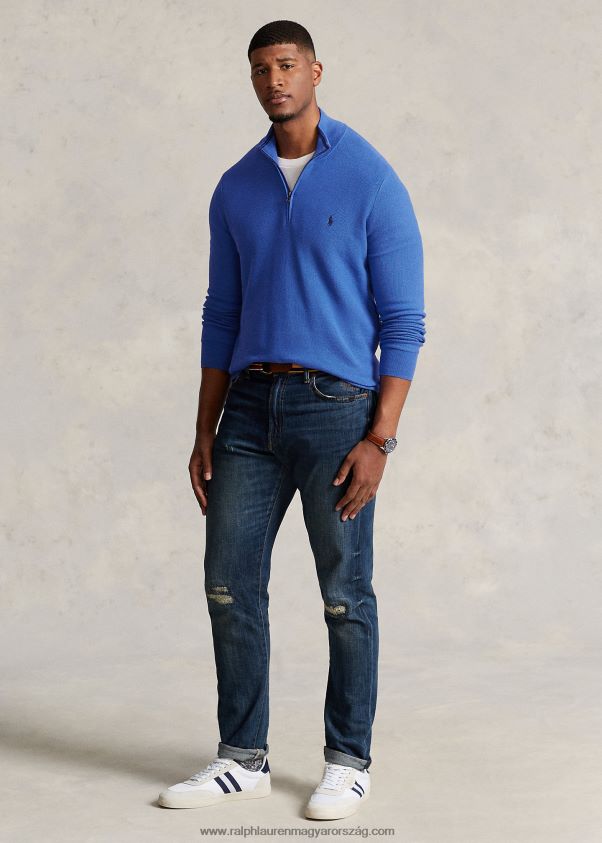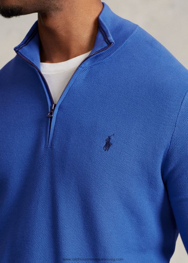 hálós kötött pamut negyedcipzáras pulóver 2680481917 férfiak Ralph Lauren leánykő kék