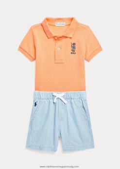 póló mackó pamut póló és rövid szett 2680487774 baba Ralph Lauren világos narancs/ chambray