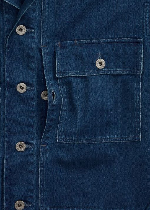 Japán pamut halszálkával készült, amelyet kifejezetten a dupla rl-hez fejlesztettek ki. igazi indigóval festve. az 1940-es évekből származó felesleges ruha ihlette. amerikai gyártmányú fém gombok. erősen mosott, az időtálló megjelenésért.