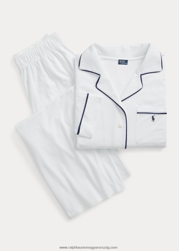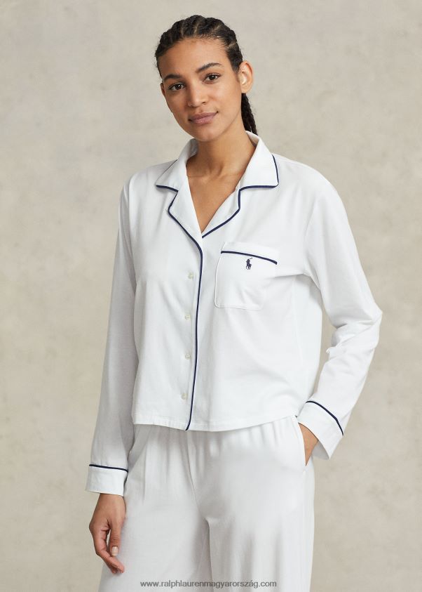 hosszú ujjú jersey pizsama garnitúra 2680483014 nők Ralph Lauren fehér felhő