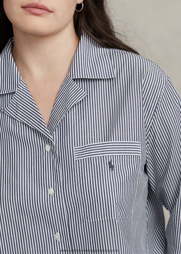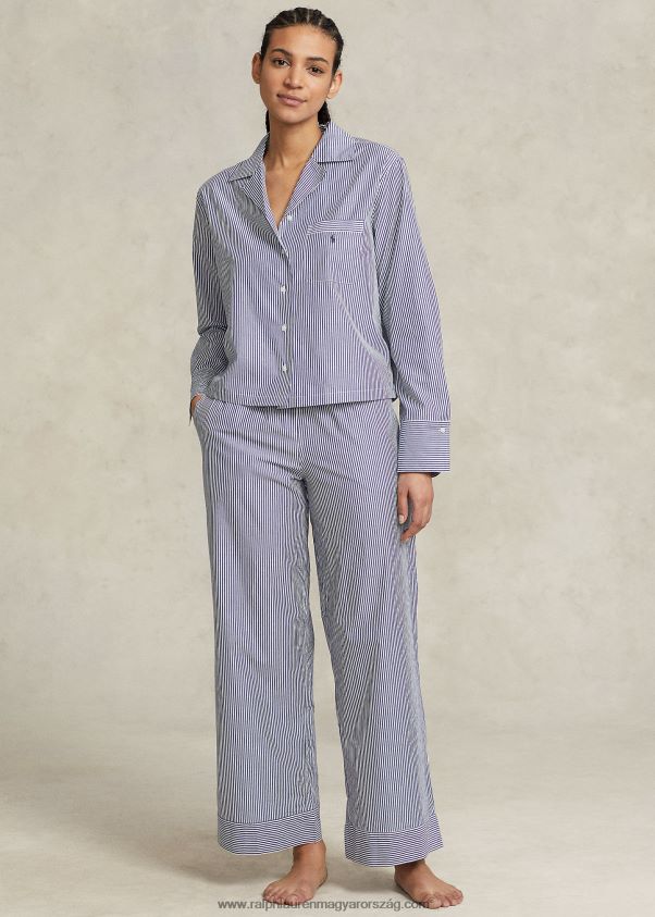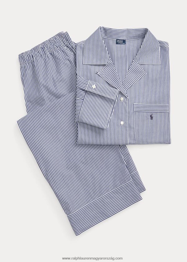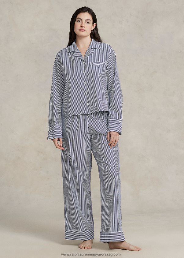 hosszú ujjú poplin pizsama szett 2680483012 nők Ralph Lauren sötétkék csík
