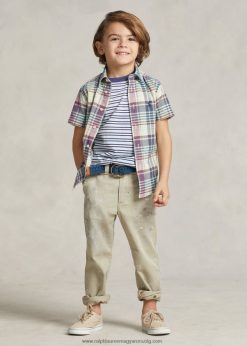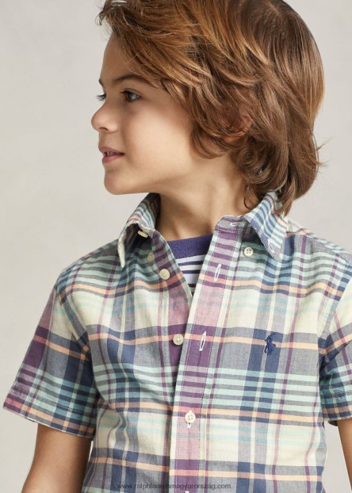 indigó pamut madras rövid ujjú ing 2680485634 gyerekek Ralph Lauren krém/tengerészet multi