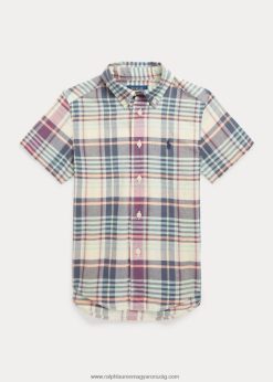 indigó pamut madras rövid ujjú ing 2680487888 baba Ralph Lauren krém/tengerészet multi