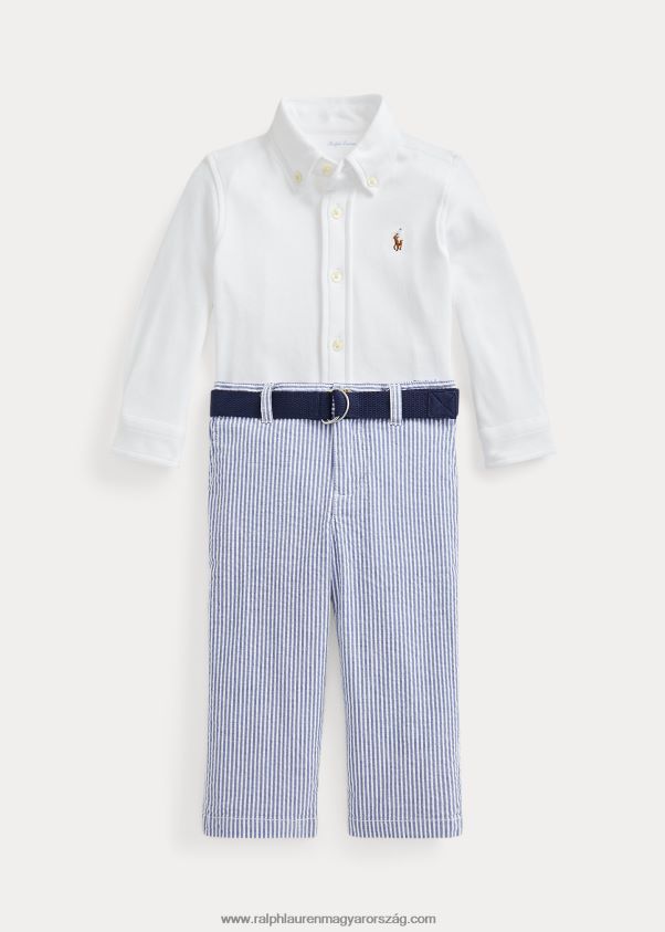 Készítsen aranyos meleg időjárási ruhát ezzel a készlettel, amelyhez tartozik egy pamut ing, sztreccs nadrág és egy koordináló öv.