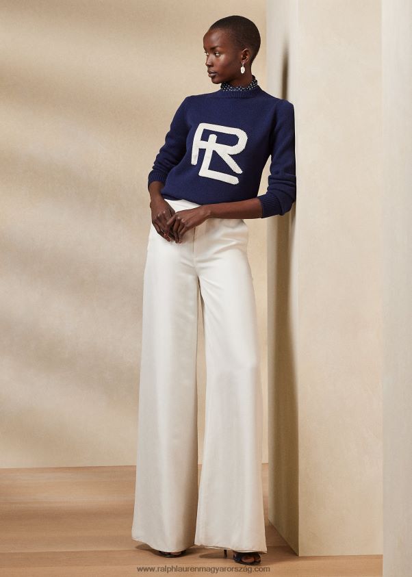 intarzia kötött rl merinó-selyem pulóver 2680483474 nők Ralph Lauren lux navy/lux krém