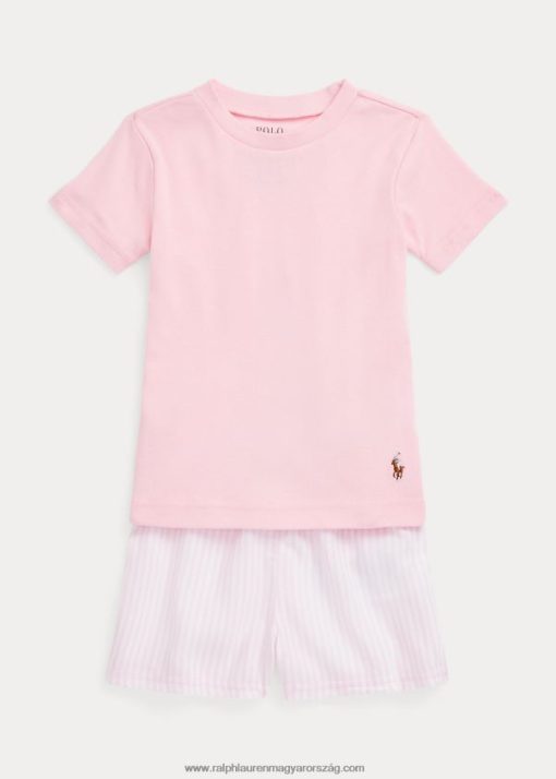 jersey póló és twill rövid alvás szett 2680487313 gyerekek Ralph Lauren fehér/karmelrózsaszín