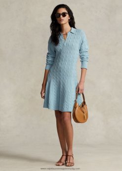 kábel kötésű gyapjú-kasmír pulóver ruha 2680483121 nők Ralph Lauren kobalt kék