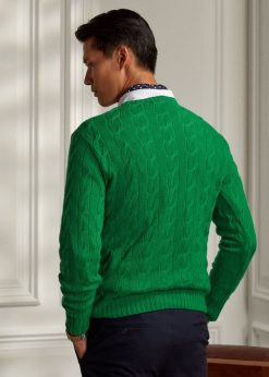 kábel kötésű kasmír pulóver 26804877 férfiak Ralph Lauren tengeri zöld