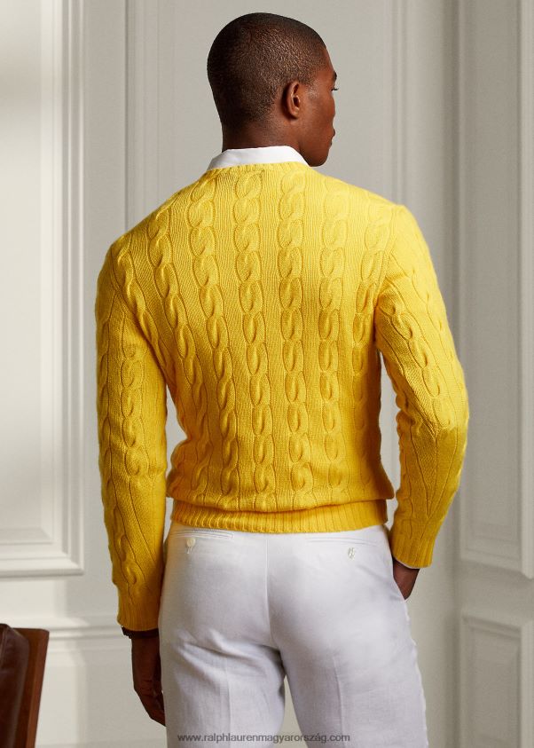 kábel kötésű kasmír pulóver 26804878 férfiak Ralph Lauren klasszikus citromsárga