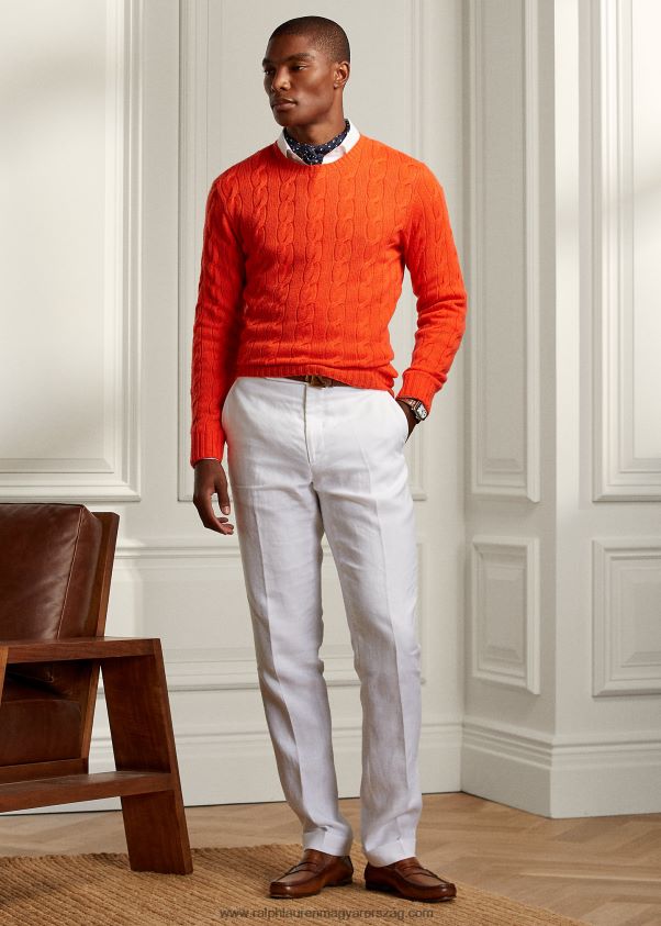 A pulóver elkészítéséhez a kasmírt aprólékosan fésülték ki Mongólia hegyeiben nevelkedett kecskékből, ahol a magas tengerszint feletti magasság és a hideg éghajlat finom, puha alsó gyapjút eredményez. csak a legjobb szálakat használják fel, ami festéskor tökéletesen egyenletes színezést, valamint kivételes melegséget és hihetetlen puhaságot biztosít. A precíz beszerzési eljárás után kézművesek fonják meg őket egy évszázados olasz malomban, és a svájci Alpokból származó tiszta vízzel mossák. ez a stílus további színekben, szövetekben vagy anyagokban is elérhető rendelésre készült szolgáltatásunkon keresztül. további információkért kérjük, foglaljon időpontot a helyi ralph lauren üzletben.