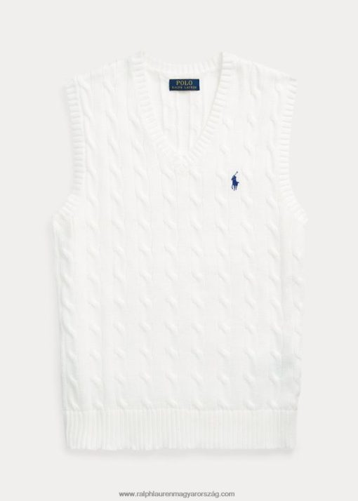 kábel kötésű pamut pulóver mellény 268048507 férfiak Ralph Lauren fehér