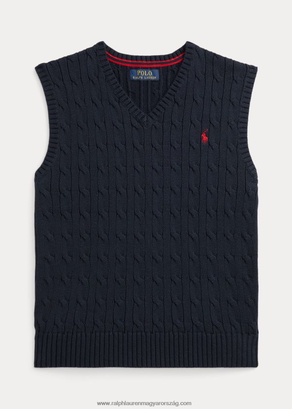 kábel kötésű pamut pulóver mellény 2680489899 gyerekek Ralph Lauren rl haditengerészet